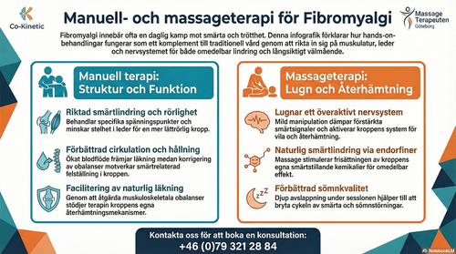 Att leva med fibromyalgi kan ofta kännas som en daglig kamp mot smärta, stelhet och trötthet. Även om det finns olika behandlingar tillgängliga, finner många lindring genom praktiska metoder som manuell terapi och massageterapi. Dessa terapier erbjuder en taktil metod för att hantera de fysiska obehagen vid fibromyalgi.